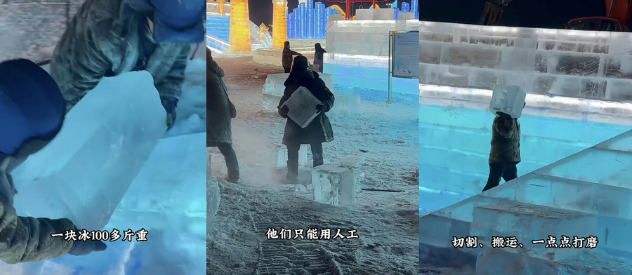 从制冰、取冰、运冰,到做成冰雕,其中耗费的人力物力不计其数。