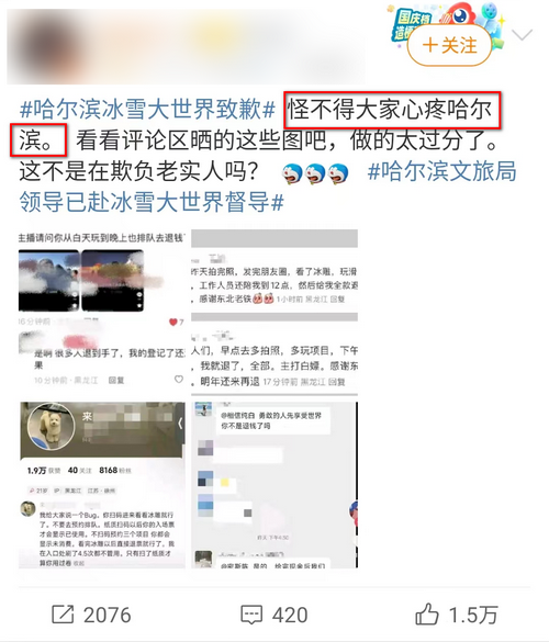 然而,网友不仅没有站在游客这边,反倒大呼:“心疼哈尔滨!”