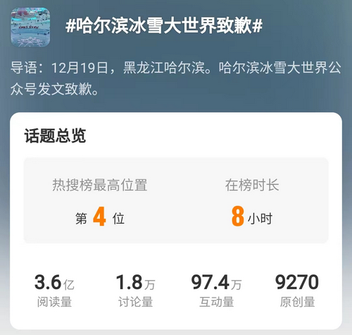 随后,#哈尔滨冰雪大世界致歉#冲上热搜。