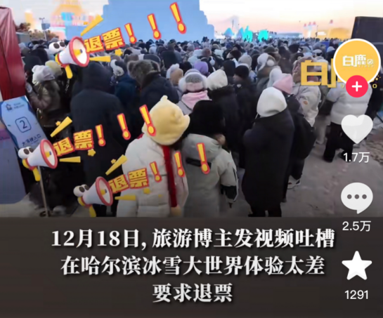 一位参与了冰雪大世界退票的博主,居然被大家给“网暴”了……