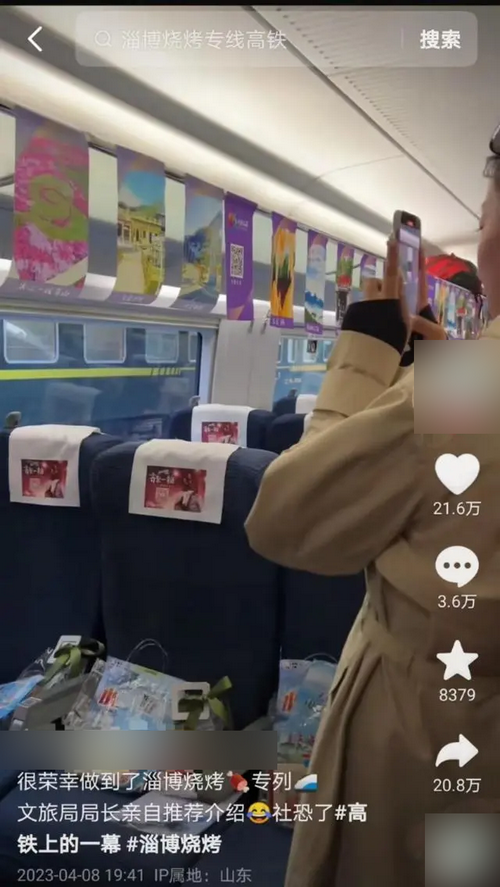 淄博甚至还为前来“打卡”烧烤的游客设置了“烧烤专列”。
