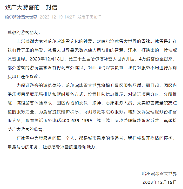 当时,“哈尔滨冰雪大世界退票事件”正闹得沸沸扬扬。