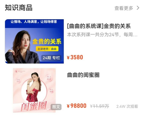好家伙,那些买课的女性有没有成功“捞”到钱,咱不知道,但曲曲是真的捞到钱了。