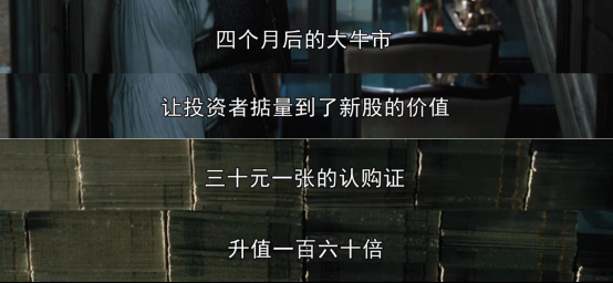 剧中,30元一张的认购证,在4个月后升值160倍,令阿宝“一夜暴富”。