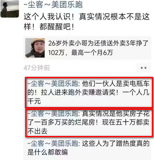 主要是因为“3年”“102万”“外卖小哥”这几个词放在一起,太违和了。