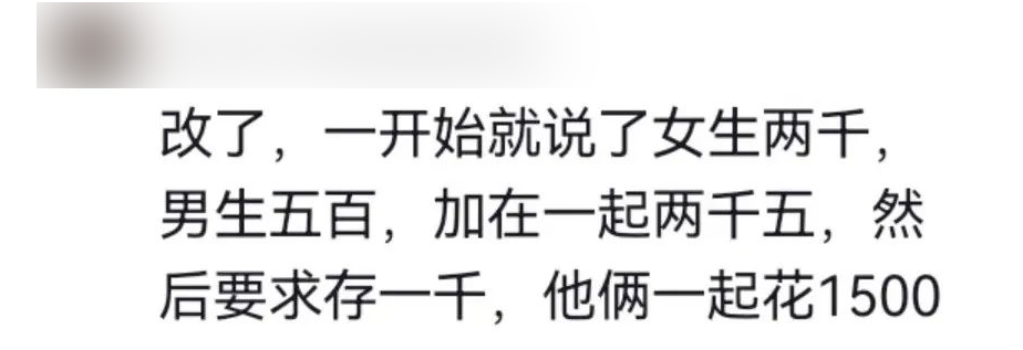 合着男方不但一分钱没出,还倒赚500元,而女方2000元的生活费却只能花750元。