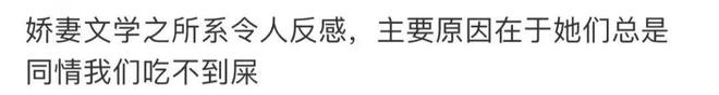总而言之,大部分网友都对这“娇滴滴”的“娇妻文学”接受无能。