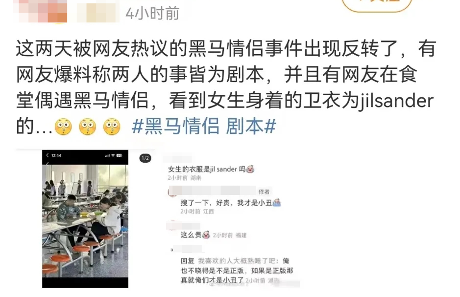 有人在食堂偶遇了“黑马情侣”,还发现女方穿着价值好几万元的高档品牌卫衣。