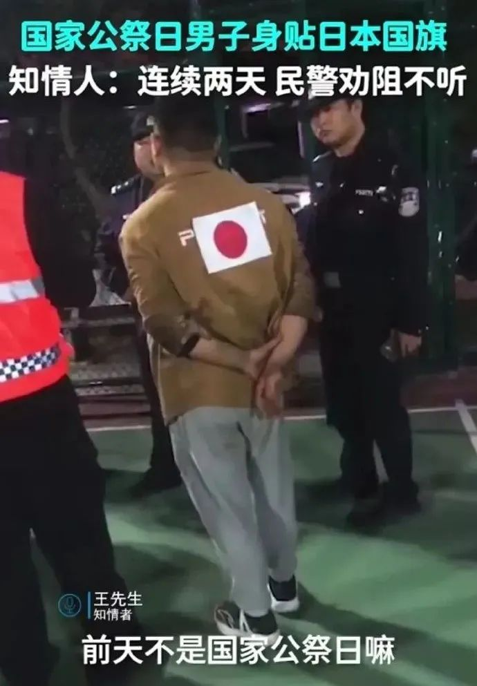 这名男子,作为一个中国人,却在“南京大屠杀纪念日”这样特殊的日子,身贴日本国旗。
