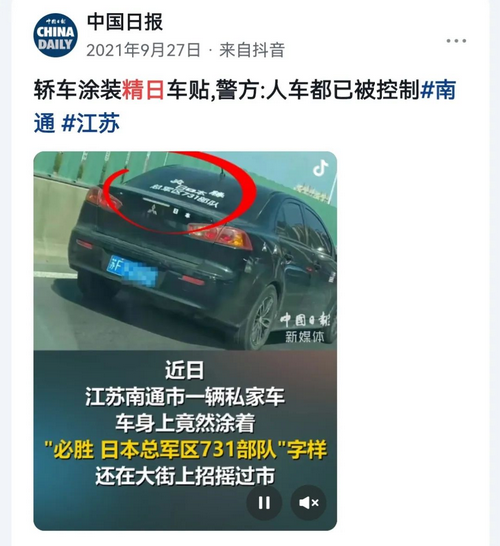 比如把“七三一部队”字样公然贴在车上,在大马路上招摇过市。