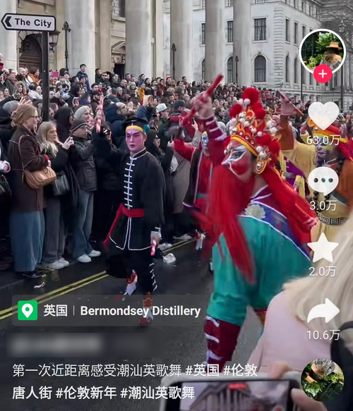 为迎接春节,在中国驻英国大使馆的支持和伦敦华埠商会的邀请下,中国广东的“英歌舞”在英国伦敦上演。