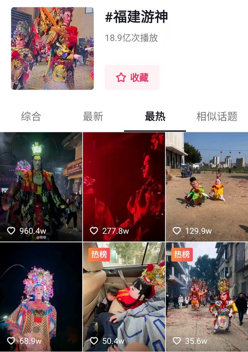 在抖音上,#福建游神 的相关视频播放量已经高达18.9亿次。