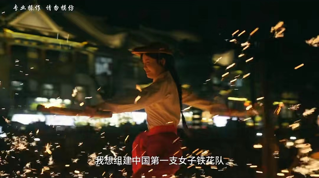 而在江寻千今天最新发布的视频里,她依旧在为传承打铁花技艺,贡献自己的力量。