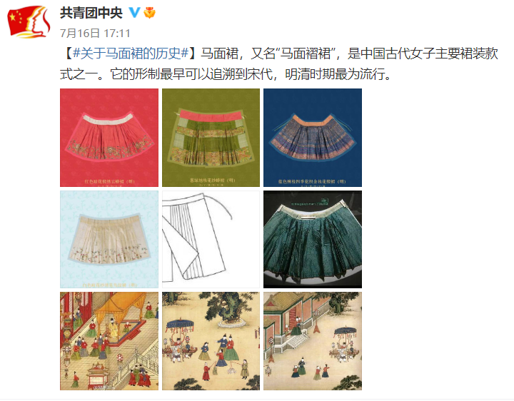 但事实上马面裙是从宋代开始便有了的中国传统服饰。
