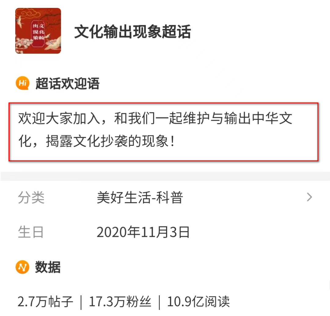 这个超话创立的目的是:揭露文化抄袭的现象,维护与输出中华文化。