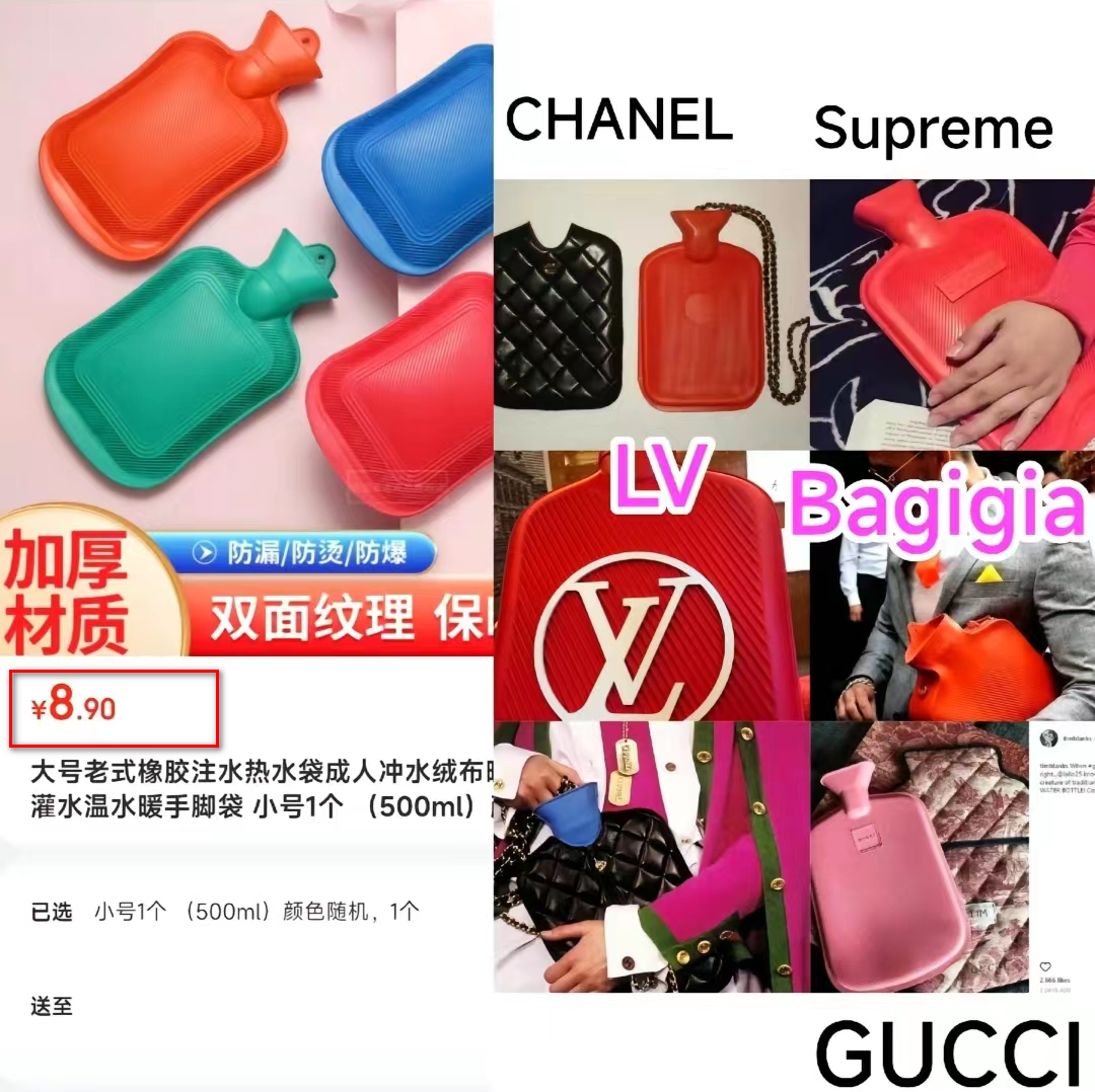 某宝上几块钱一个的热水袋,加上大牌logo,身价直接暴涨几百倍!