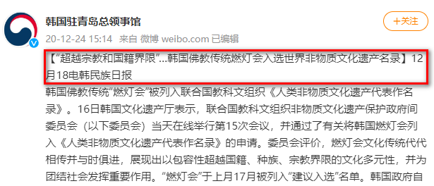 申遗成功后,韩媒甚至公开说:“韩国的燃灯会文化代代相传,与时俱进,展现出了包容性,以及超越国籍、种族、宗教等多元文化的特性。”