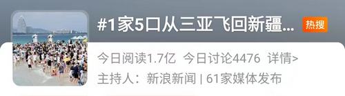 其实今天热搜还挂着这样一条消息——“1家5口从三亚飞回新疆要花10万”