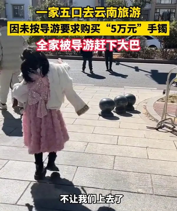 带着大包小包的一家五口,竟然被导游直接赶下了旅游团的大巴车,扔在了路边。