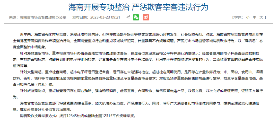 (针对“宰客”行为,海南省多次开展专项整治行动)