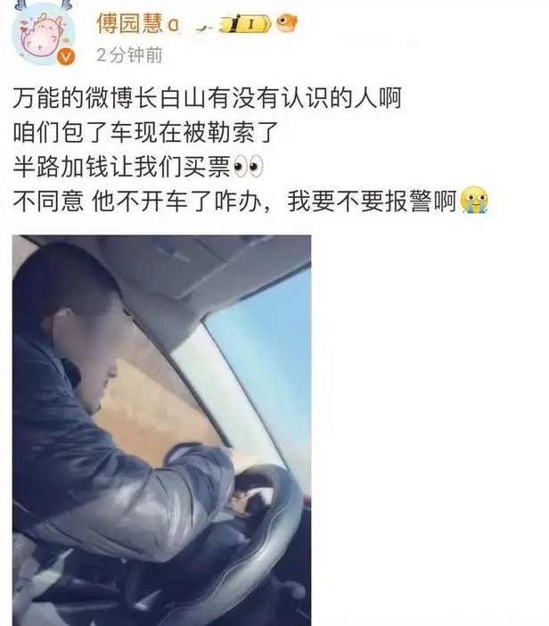 傅园慧称,自己在包车去吉林长白山景区的途中,被司机敲诈勒索了。