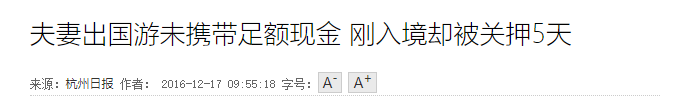 无独有偶,一对中国夫妇在出国旅游时,由于未携带足额现金等理由被拒绝入境,被关押了整整5天。