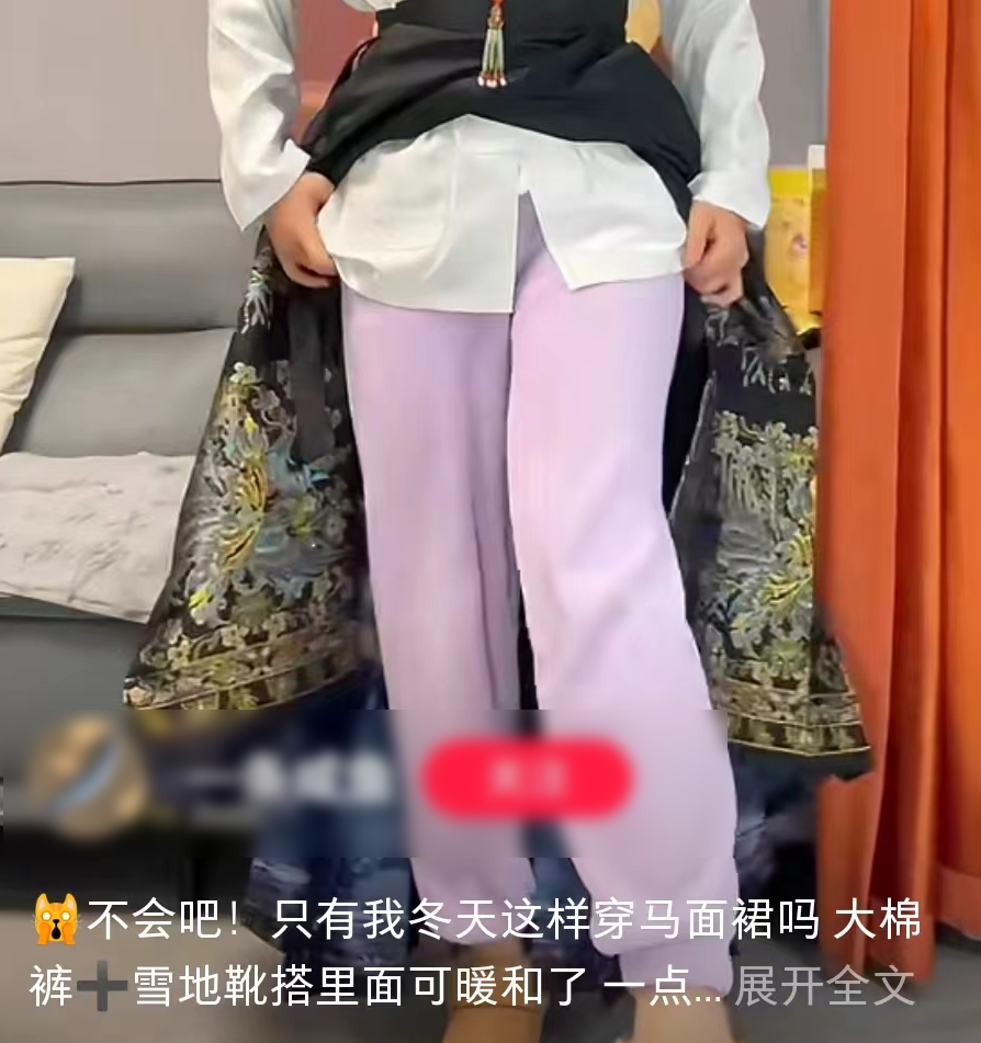 只要你不嫌厚,你想在马面裙里面套几条棉裤都行,别人根本看不出来。