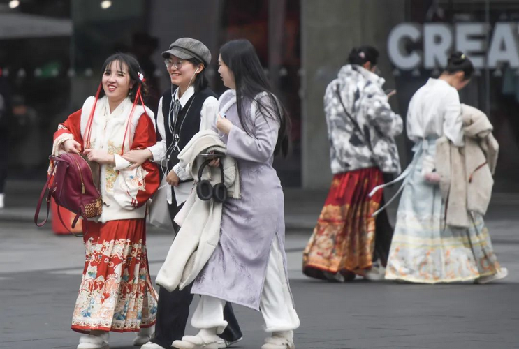 不管是在哪个城市,大街上总能看到形形色色的男男女女,身着马面裙,自信大方地走着。