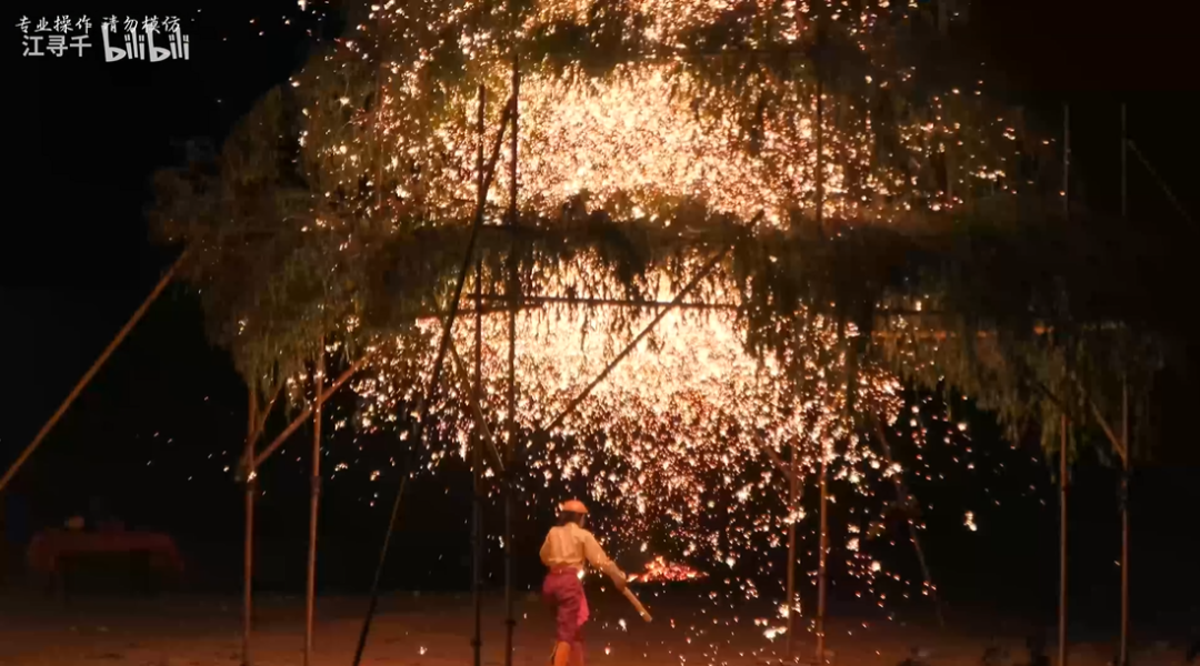 难度与危险系数都极高的“打铁花”,连很多男性都不敢尝试。