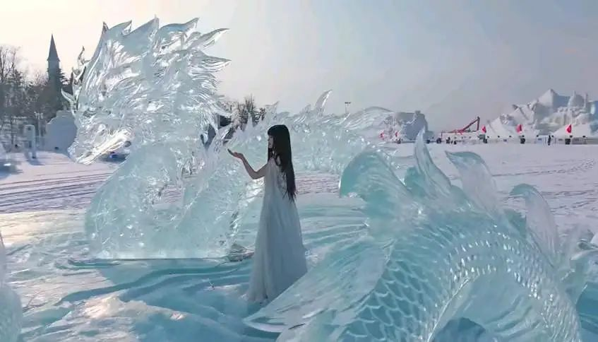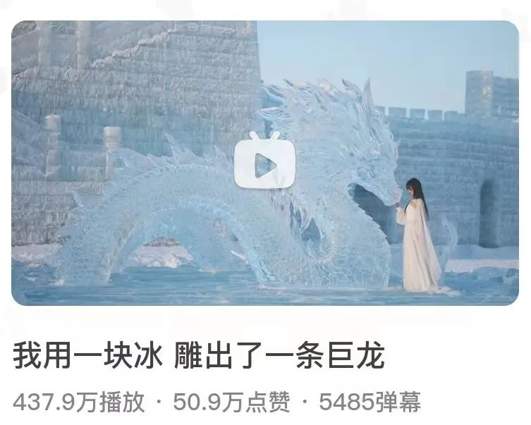 只因她发布的视频标题是《我用一块冰,雕出了一条巨龙》。