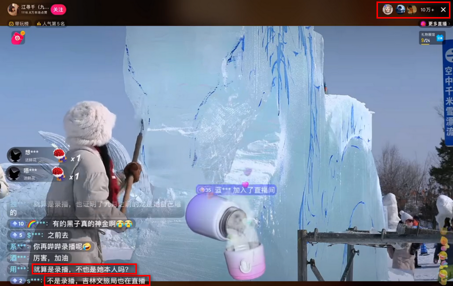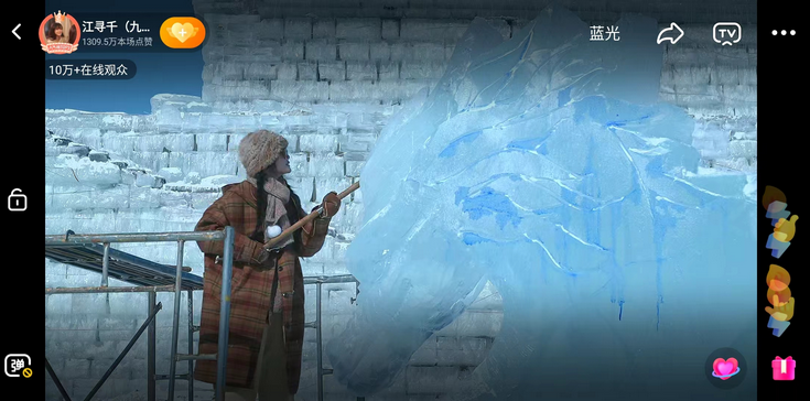 今天上午十点半,九月再次准时出现在直播间,在她的努力下,整条冰雕龙中最难雕刻的龙头部分,已经初具雏形。