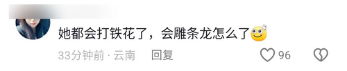 在九月的相关视频下,有人留言:“她都会打铁花了,会雕条龙怎么了?”