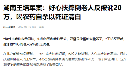 没想到,老人却恩将仇报,一口咬定是王培军撞到了自己,还向其敲诈20万元。
