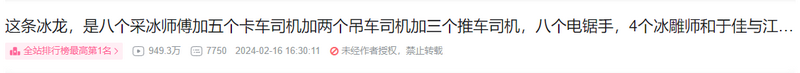 为了证明自己并不是为了炒作,九月把原视频的标题改为了《这条冰龙,是八个采冰师傅加五个卡车司机加两个吊车司机加三个推车司机,八个电锯手,4个冰雕师和于佳与江寻千共同完成》。