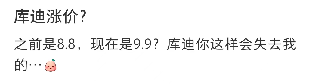 网友发现,库迪从之前的8.8元涨到了9.9元。