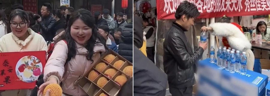 热情好客的天水市民,还主动到大街上给游客分发饮用水、特产、景区门票等。