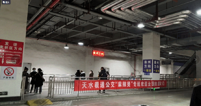 天水不仅专门开通了两条麻辣烫公交专线,还在天水南站、天水火车站拉起横幅迎接游客。