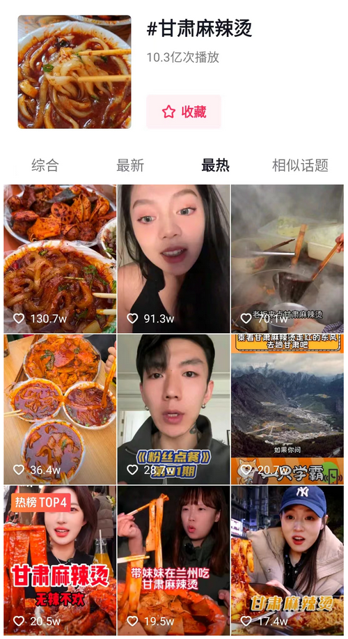 同时,这条视频也吸引了大批美食博主前去甘肃天水品尝打卡麻辣烫,抖音上相关话题播放量超过10亿次。