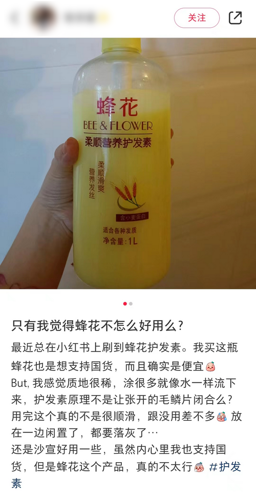 不可否认,蜂花的确便宜量大,但有一部分购买者却发现,它其实并没有网上吹嘘的那般好用。