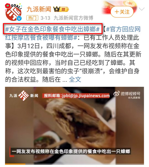 成都商报|《知名养生连锁店肉夹馍中吃出蟑螂!市监局介入,商家致歉称会给予10倍赔偿》