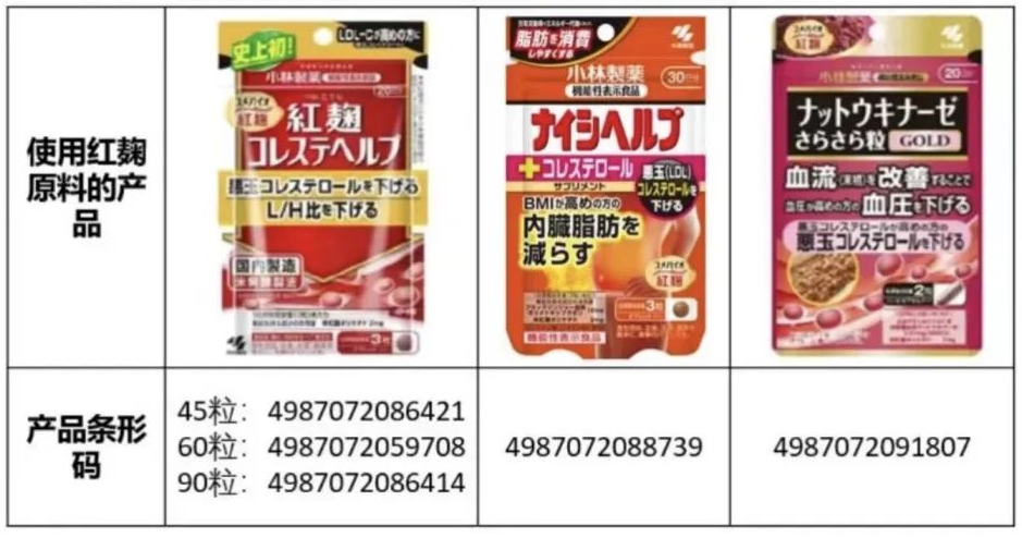 小林制药旗下的三款含有红曲成分的保健品被紧急召回,原因是可能存在导致肾脏疾病风险!