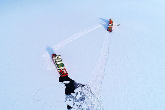 【注:“雪龙2”号是全球第一艘采用船艏、船艉双向破冰技术的极地科考破冰船,能够在1.5米厚冰环境中连续破冰航行,填补了我国在极地科考重大装备领域的空白。】