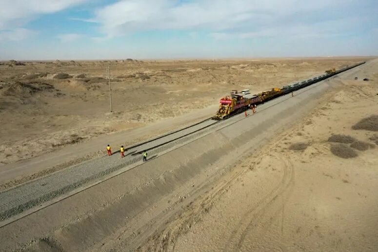 2021年2月2日,新疆和若铁路铺轨现场。图源:阿曼|新华社