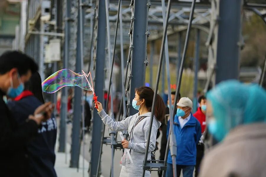 2020年3月21日,市民在兰州黄河铁桥上游玩。图|人民视觉