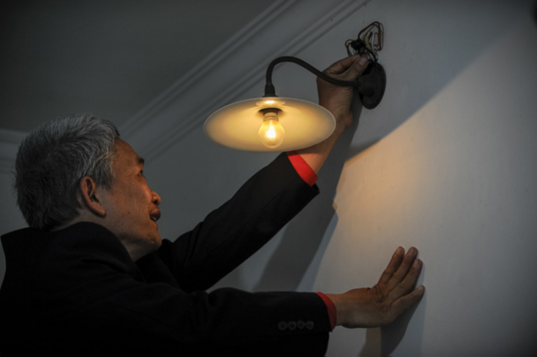 海口一位老人收藏的海南第一盏电灯。图|视觉中国
