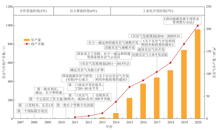 截至2020年,我们已在四川盆地上奥陶统五峰组-下志留统龙马溪组相继发现涪陵、威荣、长宁、威远、昭通和永川6个大中型页岩气田,累计探明地质储量超过2万亿立方米。