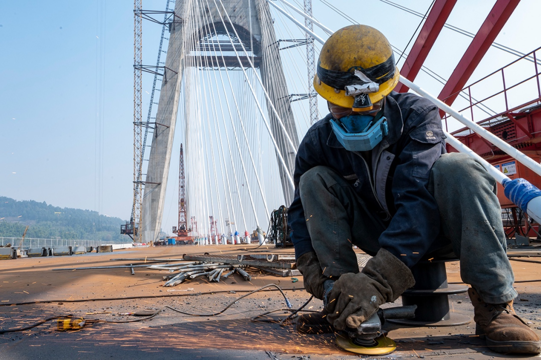 这座气势宏伟的钢箱梁桥于2019年开工,建成后将成为世界上首座公路和高速铁路平层合建桥梁,也是世界最宽、跨度最大的公铁两用钢箱梁斜拉桥。如今,公路沥青路面摊铺已完成,标志着大桥进入附属工程最后冲刺期。