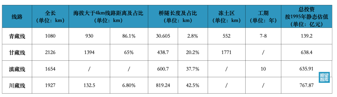 以上数据来源于2000年12月11日《人民日报》的《进藏铁路:勘查论证紧锣密鼓 四个方案各有特色》。制图:瞭望智库