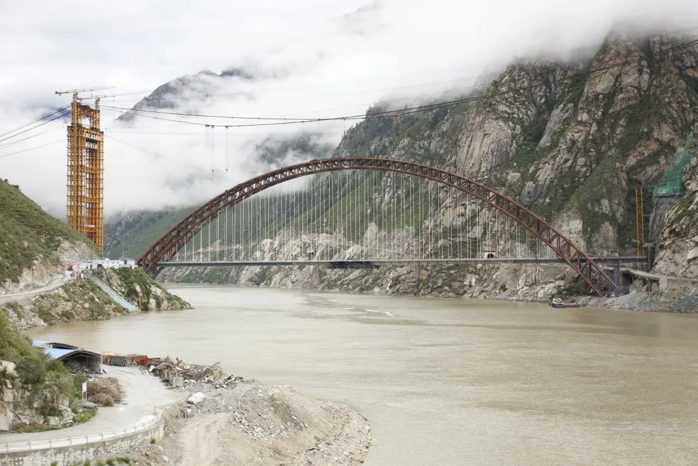 6月20日,世界上海拔最高、跨度最大的铁路钢管混凝土拱桥——藏木雅鲁藏布江双线特大桥现浇主梁成功合龙,全长525.1米,提篮式主拱跨径430米,横跨雅鲁藏布江,标志着全线120座桥梁主体工程全部完工。