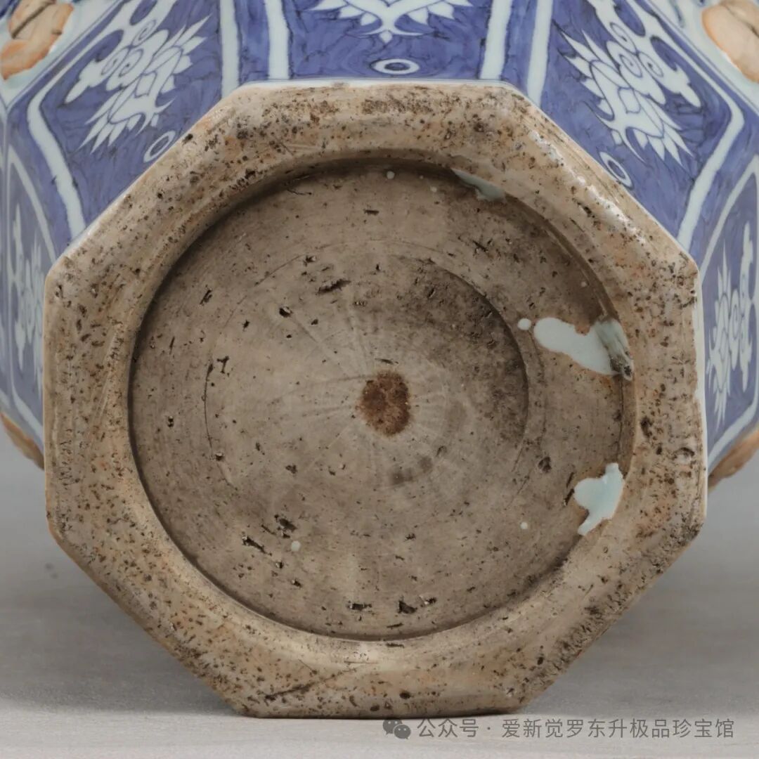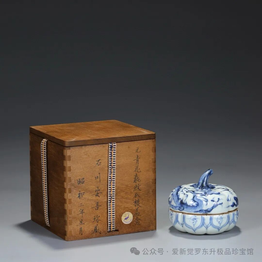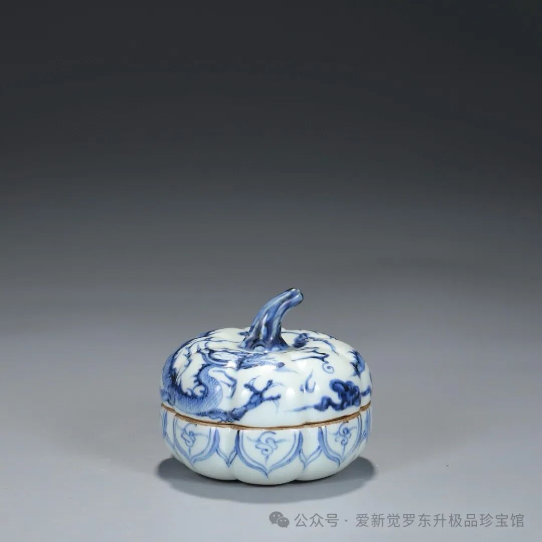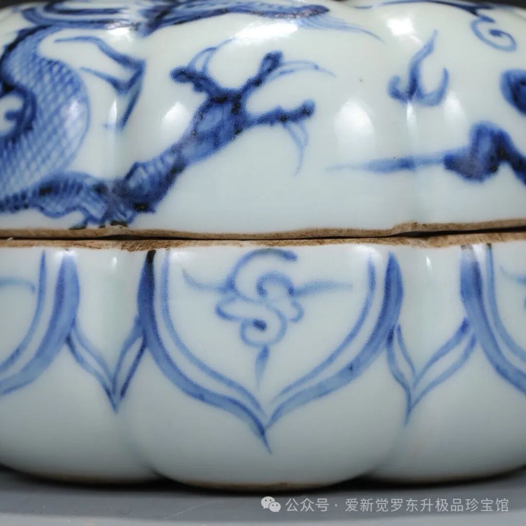 4. 青花釉里红瓷青花釉里红瓷是元代瓷器中的珍品,它将青花瓷和釉里红两种工艺完美结合,呈现出独特的艺术效果。器型以盘、碗、壶等为主,装饰图案丰富多样,既有青花的淡雅清新,又有釉里红的艳丽明快,二者相互映衬,相得益彰。旧藏 元代 青花龙纹瓜棱盖盒 尺寸:高10.5公分 口径11公分